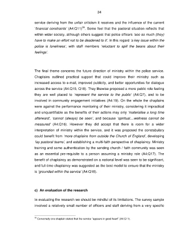 Conversely one chaplain stated that the service “appears in good heart” (A4:Q11).
