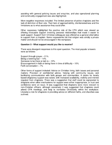 confidence were an issue. It was suggested that chaplains were more relevant to