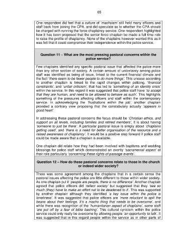 service. In acknowledging the ‘frustrations within the job’, another chaplain