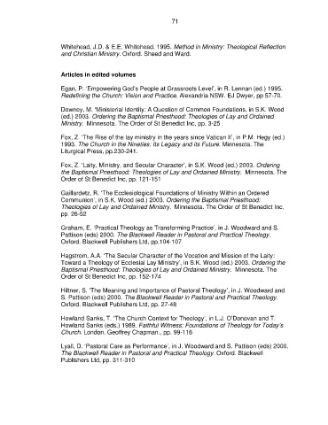 Pattison (eds) 2000. The Blackwell Reader in Pastoral and Practical Theology.