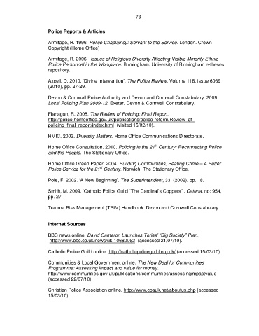 Armitage, R. 1996. Police Chaplaincy: Servant to the Service. London. Crown
